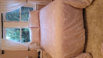 We love this new comforter set. It matches our decor perfectly and the texture is really fun. Perfect shade of blush pink. It’s also really warm.