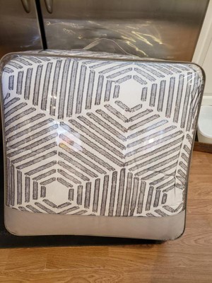 [This review was collected as part of a promotion.] The INK+IVY Ellipse Cotton Jacquard Comforter Set is pretty and it is very comfortable. It is thick and it is very warm. It washes well and it held its shape beautifully. This set came with a comforter and two shams. The comforter has a pretty ellipse pattern on one side and it is solid blue on the other side. I am always cold and this comforter is fluffy enough to keep me warm without using another blanket.