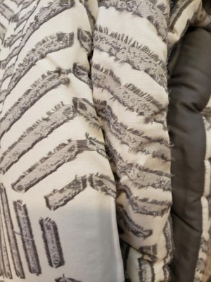 [This review was collected as part of a promotion.] I am really happy with this comforter set! I love the design. The pattern has raised threads, it is not just a printed design. It is a nice thickness. Helps keep me warm, but not so thick that I can not wash it at home. I was able to wash it in machine at home, and it came out looking and feeling great. The comforter has the pattern on one side and a plain greyish on the other, as do the shams. My kids are at the age they no longer want character bedding, and this is perfect. It fits the bed nicely, and the shams fit the pillows well. This comforter set not only looks great, it is really functional. It is a really versatile pattern, can fit into just about any décor. I could not be happier.