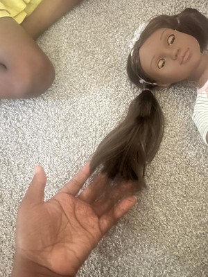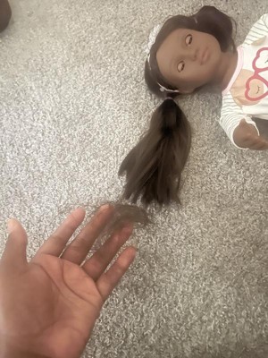 This doll is a lovely doll I purchased it yesterday my daughter is in love with the doll but unfortunately after taking the doll out of the box we noticed her hair was shedding in chunks soon she won’t have any hair. This is not good at all I want to return this doll but my daughter won’t let it go