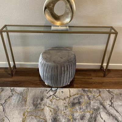 Jolie Pleated Ottoman Blue - Adore Decor: Chic Round Velvet Stool, Gold Base, No Assembly Required