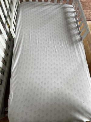 The mattress is firm, comfortable, and breathable. I don’t have to worry if my baby changes position in his sleep. The baby and toddler sides both seem good quality. Cotton is always the best choice for year round, especially if baby gets hot easily.