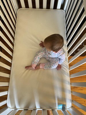 I'm satisfied with this mattress. It is a bit difficult to get a review from an infant, but I do think this is a quality product. One side is just a bit firmer than the other (honestly I would have not noticed that, but it is noted on the tag). There is an "infant" side and a "toddler" side. Seems thicker than most other children's mattresses. Will fit in a standard size crib.