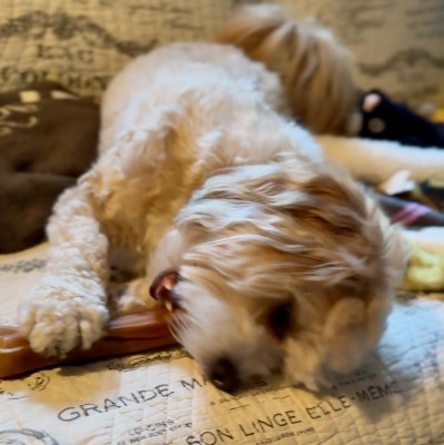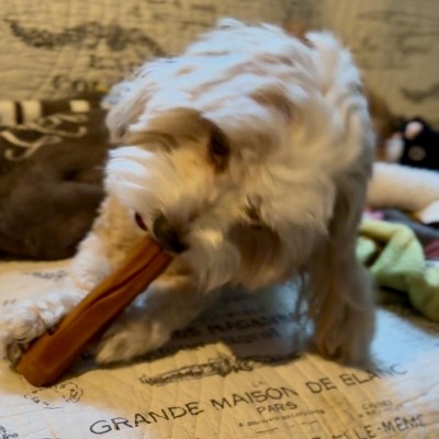 The dog really likes it and significantly chewing on things that she shouldn’t a lot less.