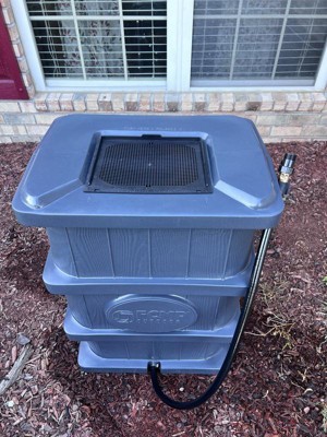 [This review was collected as part of a promotion.] I've been wanting a rain barrel for passive water collection to water the garden for years. This past summer we had a drought and ridiculous heat, and everything had to be watered so frequently, the water bill was getting painful. So I was so excited I had the opportunity to get this water barrel from FCMP Outdoors. It is super lightweight and not too big around to make it difficult to carry. I was able to unbox it and move it around to figure out which downspout to put it under myself with no help or dolly. Installation was really easy. The grate on top is good for keeping it larger debris like leaves and acorns, but still allowed in bugs. We have a big mosquito problem here, so I had to add fine mesh over the grate to keep bugs out, but that wasn't a huge issue. I think it will be a good size for my veggie and herb garden to help cut back on how much I pay to water it next summer. It looks nice across the yard with the faux wood grain. I'm glad it didn't just come in brown, the gray helps it to blend in with my other outdoor decor. So it's been good so far, I can't wait for next summer to really be able to use it!