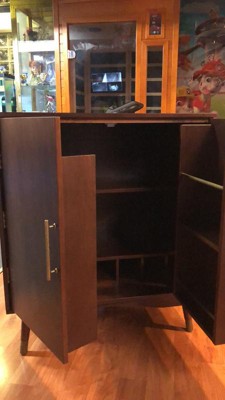 Lifestorey Killian Mid Century Modern Bar Cabinet Walnut: Mid-Century Modern Wine & Glass Storage