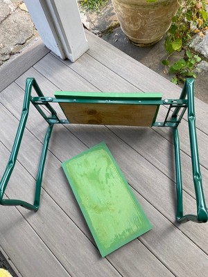 I bought this for myself a year or so ago. I love that it can be used for sitting or kneeling, and it folds for storage. However, the paint chips and the metal underneath has rusted a bit, and the pads both have melted off in the heat here. They are only glued on.