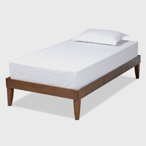 Twin Lucina Walnut Platform Bed Frame Brown - Baxton Studio: Mid-Century Modern, Rubberwood, No Headboard, Unupholstered