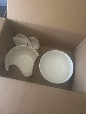 Open up my box and there was no thought in packaging this box! Not one piece of packaging paper or bubble wrap! The one bowl was broken and the other had a chip in it!