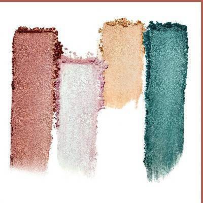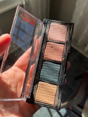 So the variety of texture in this little quad (a satin, two metallics, and a translucent duochrome) is impressive for an old school drugstore brand. The pigmentation is great. Fallout is pretty ordinary amount - if it bothers you use a sticky primer (I don't.) Blends really well, though the dark green is a bit finicky.