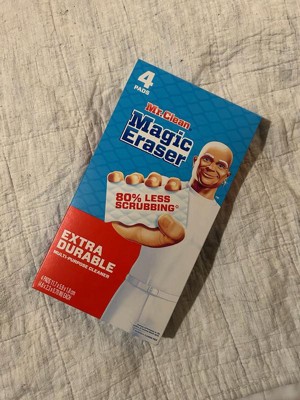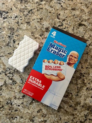 - Mr. Clean Magic Eraser Extra Durable scrubber requires 80% less scrubbing* *Cleaning performance vs. the leading all-purpose bleach spray