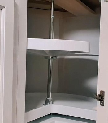 [This review was collected as part of a promotion.] I just got the shelf installed the other day. I had so much waste of space because it’s hard to get to area. It’s between countertops and stove and you can only fit so much. You can’t get down there to get two things but with this roundabout shelf turn it, turn it, turn it and you can reach whatever you have down there. It’s the best thing we had one of these when I was growing up didn’t think they made them anymore. This is a wonderful thing if you have wasted space. This was also easy to install going to be looking for one for in my bathroom.