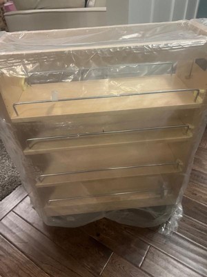 [This review was collected as part of a promotion.] I received this product and was very excited to install it, but my cabinets are to short. So, with that being said we are building another cabinet and then placing this pull out organizer in it. The wood work is gorgeous and it is heavy! The cabinet is made extremely well.