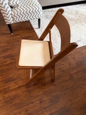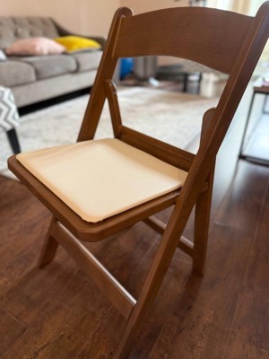 [This review was collected as part of a promotion.] This chair surprised me. At first glance, the backrest was slightly shorter than the steel chairs I own, so being a bigger guy at 6’3” had me worried I wouldn’t fit on it. That turned out to not be the case at all! The slight curve in the back rest helped support my lower back, and the padding on the seat of the chair was a noticeable upgrade in comfort versus a regular foldable chair. Folds away nice and slim for easy storage, and has been a stylish addition for additional temporary seating. Has good weight to it that makes it feel like it’ll be durable for time to come. What more could you ask for in a folding chair!