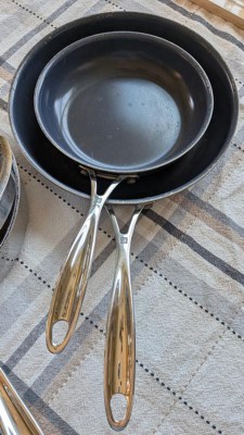 [This review was collected as part of a promotion.] Great quality and highly recommend by sales associate. Love the ceramic non stick coating. The pan has some weight to it and like that the handle doesn’t get hot.