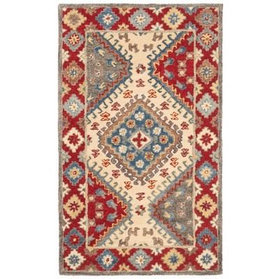 Transform your living space with this exquisite area rug, meticulously crafted to enhance any room. Measuring 3 feet by 5 feet, this small rectangular rug is hand tufted from wool, offering a tactile experience that invites comfort. The rich red hue complements its traditional style, adding a touch of elegance and warmth. Originating from India, this rug brings a sense of cultural artistry to your home. Its simple design allows it to blend seamlessly into various interiors, making it a versatile addition to any decor. Embrace the subtle sophistication and timeless charm this rug offers, creating a harmonious atmosphere where beauty meets functionality.