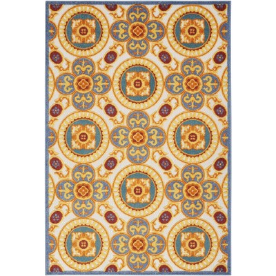 A cheerful and charming oversized leaf design is a fun, flirty, and fashionable way to uplift any environment, especially when presented in complementary hues. This Aloha indoor/outdoor area rug from Nourison is created from premium stain-resistant fibers for long wear, low maintenance, and a splendid texture.