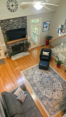 Love this rug! It brightens up the room and does an excellent job of tying in the gray, tan and ivory in the room. Using with a rug pad and it lays nicely as you can see. Would definitely recommend. I actually bought another smaller one for the den.