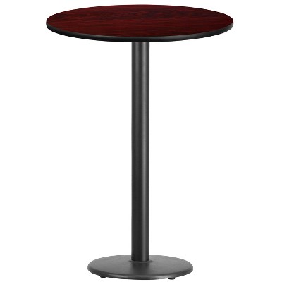 Flash Furniture 24'' x 30'' Rectangular Mahogany Laminate Table Top with 18'' Round Bar Height Table Base and Foot Ring