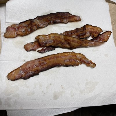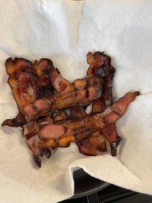 Delicious bacon!! Crisped up perfectly. Not too fatty. Kids loved it, too. Will definitely be buying it again