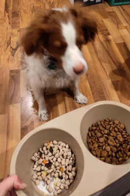 [This review was collected as part of a promotion.] I use this as a topper to help elevate my dog dish. He is usually a very picky eater, but had no problem scarfing this down. It’s very nice that the bag is resealable so the food states fresh. It’s easy to store in the refrigerator and I can ensure my dog is getting fresh healthy food.