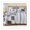 [This review was collected as part of a promotion.] I was gifted this product in exchange for my honest opinion and I actually love this set. It's a lovely reversible pattern in a nuetral color scheme. As shown in my photo, the quilt features a calming under the sea scape on one side and stripes on the other. It is very high quality, even after washing several times. It's light for the warm weather and I can fit in my regular washing machine! I love it and have received compliments on it.