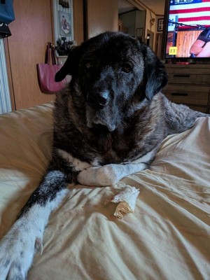 [This review was collected as part of a promotion.] My Nita is a big girl. 140 pounds of muscle city,! She's half Anatolian/half Great Pyrenees. She devoured the jerky. It's her favorite!