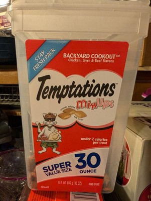 - This TEMPTATIONS Cat Treats feature savory cookout flavors, such as chicken, beef and liver that your cat will adore