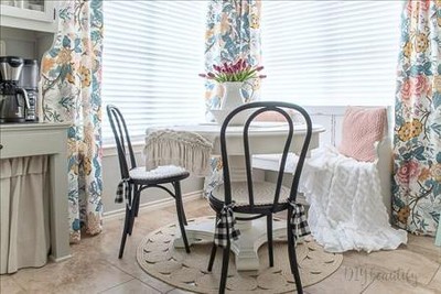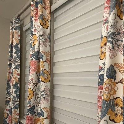 I love the beautiful vintage-style blooms on these curtains! They are heavy, wash well and hang very nicely from clip rings!