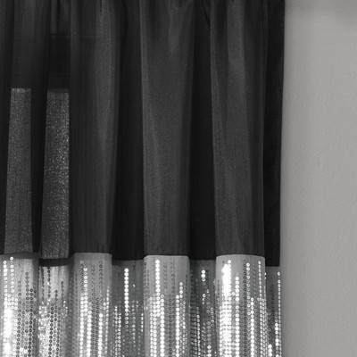 [This review was collected as part of a promotion.] This Lush Decor curtain has sequence at the top of the single black and white 100% polyester curtain. It brings in a lot of light into the room, the material is very thin. This can go in a living room, dinning room or even a bedroom.