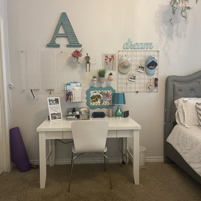 The size is great and it is a good value and I love the gold detail to go with the gold accents in my office, however the white letters against the white wall don't show up at all. Considering returning for an acrylic calendar with black letters and squares.