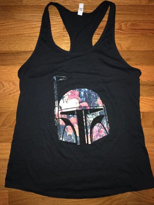 Juniors Womens Star Wars Boba Fett Floral Print Helmet Racerback Tank Top