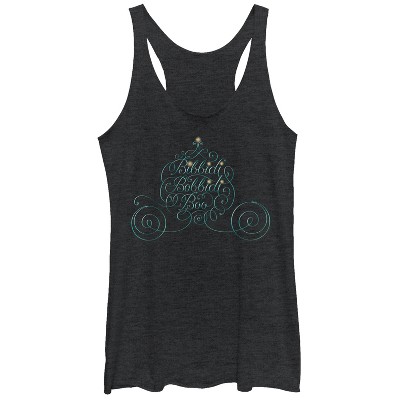 You must have a fairy godmother on your side because you just found the Disney Cinderella Bibbidi Bobbidi Boo Women's Racerback Tank Top! This beautifully detailed Cinderella tank top features the spell "Bibbidi Bobbidi Boo" shaping Cinderella's ornate pumpkin carriage in a delicate style across the front.