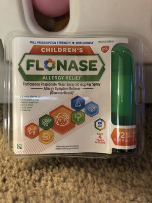 Flonase Children's Allergy Medicine relieves your child's worst allergy symptoms in a non-drowsy formula for year-round, all day indoor and outdoor relief. Unlike most kids allergy medicine, Children's Flonase relieves runny nose, sneezing, itchy nose, itchy eyes and watery eyes, plus nasal congestion.* Children's Flonase allergy relief nasal spray contains fluticasone propionate , the #1 pediatrician prescribed allergy medicine.** Easy-to-use Flonase allergy nasal spray helps kids achieve more complete relief of allergy symptoms caused by pollen, mold, dust and pet dander. The non-drowsy 24 hour allergy relief medicine for kids ages 4 to 11 is specially formulated for allergy relief to keep kids energized and focused throughout the day. To use: once daily, place the small nozzle tip inside the child's nose and spray gently in each nostril.