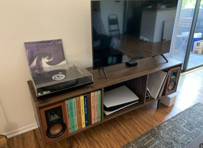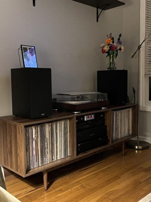 Large Liam Record Storage Console Cabinet Walnut - Crosley: Vinyl Player Stand, Media Shelves, Divided Storage