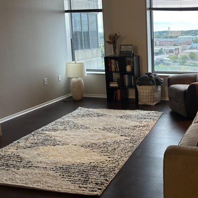 Really love this rug and how it brightens up our very brown apartment rental! It feels good under the feet and feel it goes with lots of decor styles.