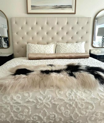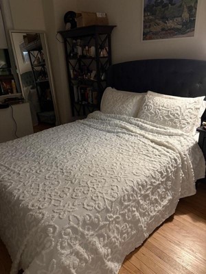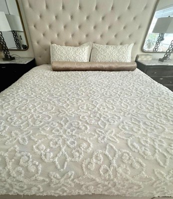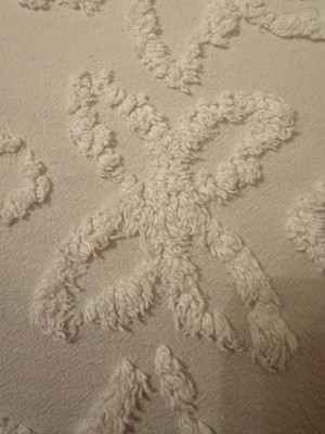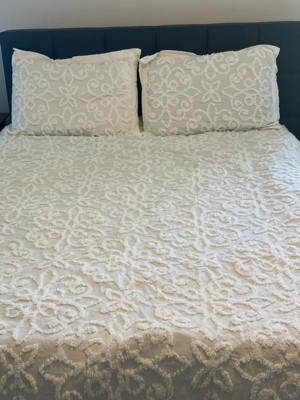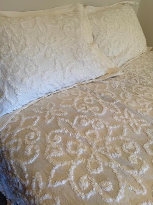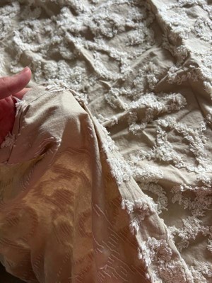 [This review was collected as part of a promotion.] This is a nice cozy looking tufted bedspread made of chenille fabric. It is soft and made up of cotton like feel fabric with threads that give a nice modern farmhouse look. The threads are pretty much visible which gives it an edgy look but some may find it a bit shabby. I washed it once and I did notice some thread shedding but it's pretty much expected by it's look and threadwork. Overall it is a subjective bedspread that some may like and some may not. This comes with two shams.