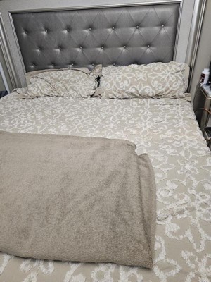 [This review was collected as part of a promotion.] Super cute farmhouse style bedding! I like that it's thin and oversized to actually come down on the sides of the bed. The fit is perfect for my king sized bed and it feels well made. Warning it does shed a bit but after a few washes it will be ok. It does look like the picture I just didn't "fluff" it or anything but I LOVE the design.