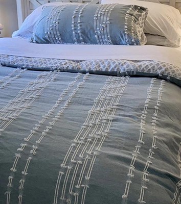 [This review was collected as part of a promotion.] This is a really cute duvet cover set and I love the color and texture of it. It works well on my guest bed and has been a perfect addition. I have a lightweight duvet inside the cover and that seems to work for really well.