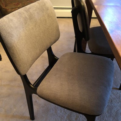 The chairs look amazing! I was looking for simple and modern chairs to put around my large hardwood table. They’re a perfect addition to my dining room. They are great quality with some weight to them and wider in person which makes for a much more comfortable seat.