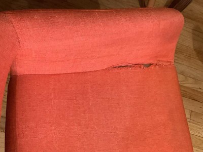 Love the color and shape but the fabric stitching is poor. Both chairs are now ripped at the seams where the seat meets the arms. Wish I hadn’t wasted my money.