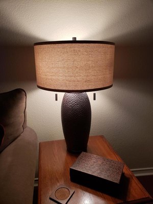 I bought 2 of the Noah Hammered Bronze Table lamps. They look the same as they did online. I like them They are in my living room and they look good. They were delivered on time and the packaging was very good. The lamps were unharmed.