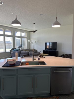 We have two hanging over our new island and they are perfect, beautiful and provide a great light for dinner or just reading the paper.
