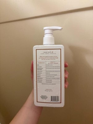 [This review was collected as part of a promotion.] Great scent! Love the gentle feel of this, easy to use with the pump top! Worked well on curly/wavy hair, and didn’t leave any residue. Did give a nice little shine and was easy to brush after the initial wash!
