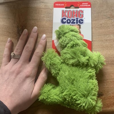 This dog toy is so cute! I love that Kong makes this "Cozie" line of products. I bought it as a gift for an older dog that likes to snuggle more than play these days and he immediately laid his head on it as if it were a little pillow! It is so soft and had the high quality I expect from Kong. (Tough, high quality materials, secure stitching, durability)