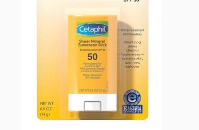 Cetaphil Sheer Mineral Sunscreen Stick SPF 50, Face & Body - 0.5 fl oz: Paraben-Free, Hypoallergenic, Contains Vitamin E, Titanium Dioxide