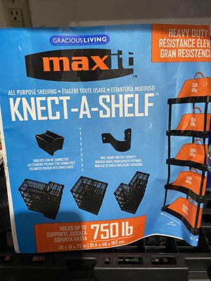Declutter your home, office, or garage space with the Knect-A-Shelf Heavy-Duty 4 Shelf Interlocking Storage Unit by Gracious Living. This durable but lightweight shelving unit can instantly help organize tools in your garage, files in your office, or anything that you need to be stored. Constructed of durable plastic, this 4-shelf unit can hold 150 pounds per shelf without bending or wearing down the shelves for a total of 600 pounds per unit. If 4 shelves aren't enough, the state-of-the-art interlocking system allows you to connect your shelf to others (sold separately), creating your very own custom shelving unit. Designed with a black finish, this shelving unit will seamlessly blend into any room you set it up in. The Knect-A-Shelf assembles quickly and easily, without the need for tools to ensure a stress-free setup. At a little over 4.5 feet tall and 3 feet wide, this shelving unit is ideal for storing whatever you need in your garage, basement, utility room, laundry room, or anywhere storage is required. Get organized with the Gracious Living Knect-A-Shelf Heavy-Duty 4 Shelf Interlocking Storage Unit.