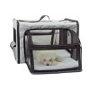 The Pet Life Capacious Expandable wire folding lightweight collapsible crate is composed of heavy-duty Ballistic Nylon and Mesh with bendable yet sturdy built-in flexible extenders that easy closure into place and hold up the 2 outer mesh expandable sides. Fully expands on both sides and collapses and folds. Perfect for multiple pets. Lightweight and great for traveling and indoor or outdoor usages. Features a spacious frontal breathable mesh entrance that rolls up and easy closure's into place, great for added sunlight visibility and exposure when opened with a back mesh window. Features dual reinforced stitching for added durability. Comes with an included reversible plush inner cushion that extends to cover the full surface area. Available in Multiple Colors and Sizes.