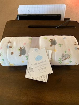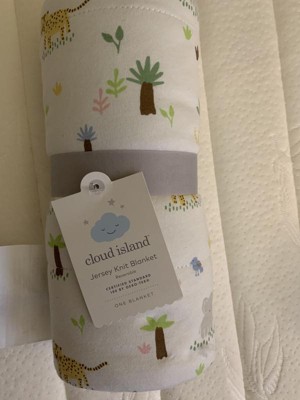 Jersey Knit Reversible Baby Blanket Jungle Animals - Cloud Island™ Gray/Greenish soft to the touch and is reversible. It has baby animals like sloths and koalas. Makes a great baby gift.