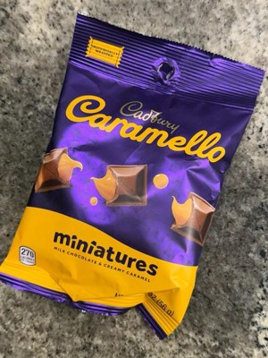 Cadbury Caramello Miniatures (Milk Chocolate & Creamy Caramel) are a popular bite-size chocolate candy known for their smooth texture and rich caramel filling 🍫✨ Here’s what’s important to know: 🍬 What they are: • Mini milk chocolate pieces filled with soft, flowing caramel • Individually wrapped • Smaller versions of the classic Cadbury Caramello bar • Designed for sharing, snacking, or candy bowls 🏭 Brand & origin Made by Cadbury (UK brand, founded 1824). Now owned by Mondelez International. Known for its creamier milk chocolate compared to many U.S. brands Ingredients (typical): Sugar, Milk (milk chocolate + caramel), Cocoa butter & cocoa mass, Glucose syrup, Butterfat, Emulsifiers (often soy lecithin), Flavorings (vanilla) ⚠️ Contains: Milk, Soy, Usually no gelatin 🩺 Nutrition & health notes: High in sugar and saturated fat Low in fiber and micronutrients Not suitable for: Diabetics (unless very limited), Dairy-free diets. Fine as an occasional treat 🧠 Taste & texture: Smooth, creamy milk chocolate. Rich, buttery caramel center. Less sweet and less waxy than many mass-market chocolates. Very meltable (especially in warm weather)